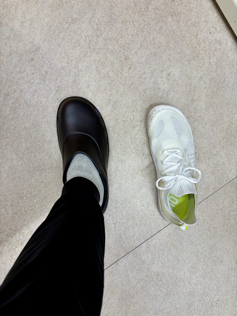 とても軽く、かかとを踏んでスリッパのようにも履けますし、かかとを入れてきちんと履くこともできます。