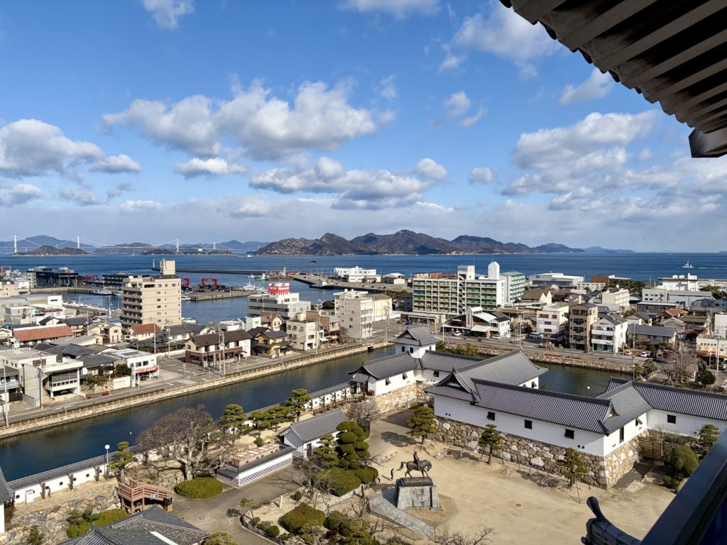 天守閣まで上がると、今治の街全体を見渡すことができ、
